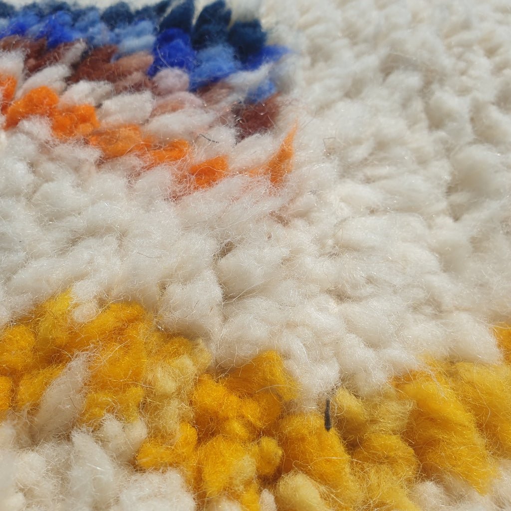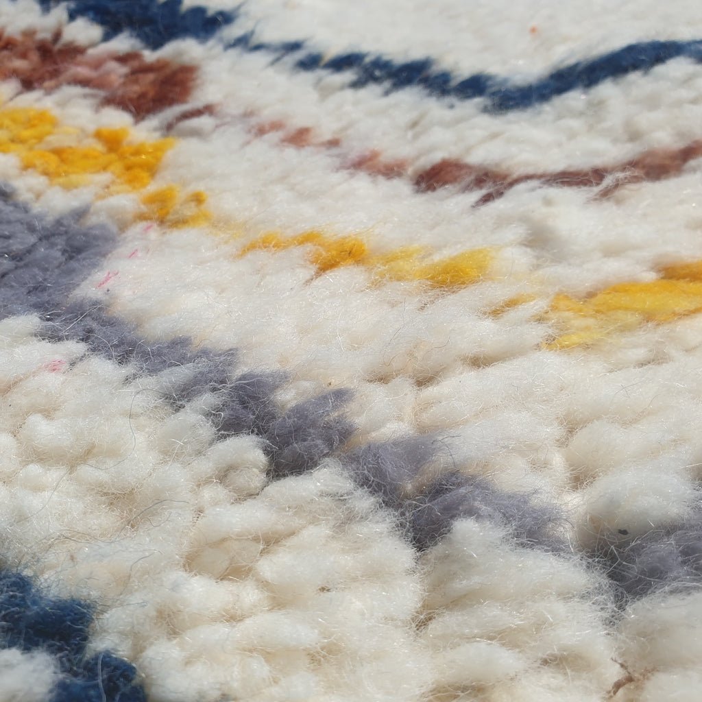 💮 Our Beni Ouarain Moroccan rug is made of naturally dyed wool. The most suitable rug for every decor and any design is the traditional Beni Ouarain. To create the greatest handcrafted spark for your room, choose natural wool that is soft and dense. It is currently highly well-liked for its neat, minimalistic appearance, as well as for its beauty and comfort.