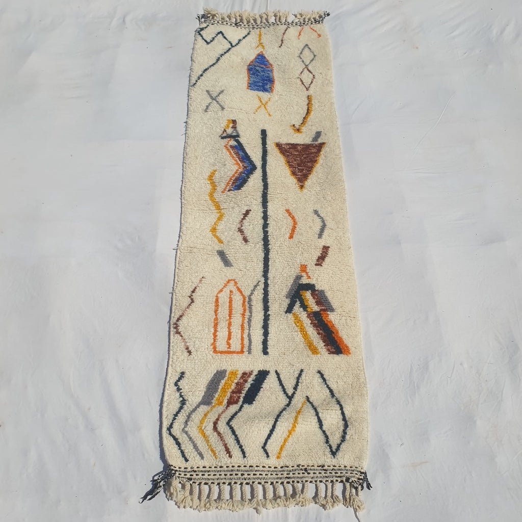 Jumana - Beni Ouarain Moroccan Runner Rug | Authentic Berber Colorful Wool Hallway runner | 9'6x2'7 Ft | 293x81 cm
