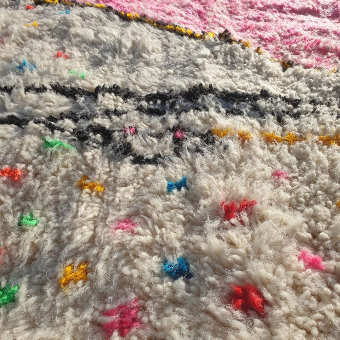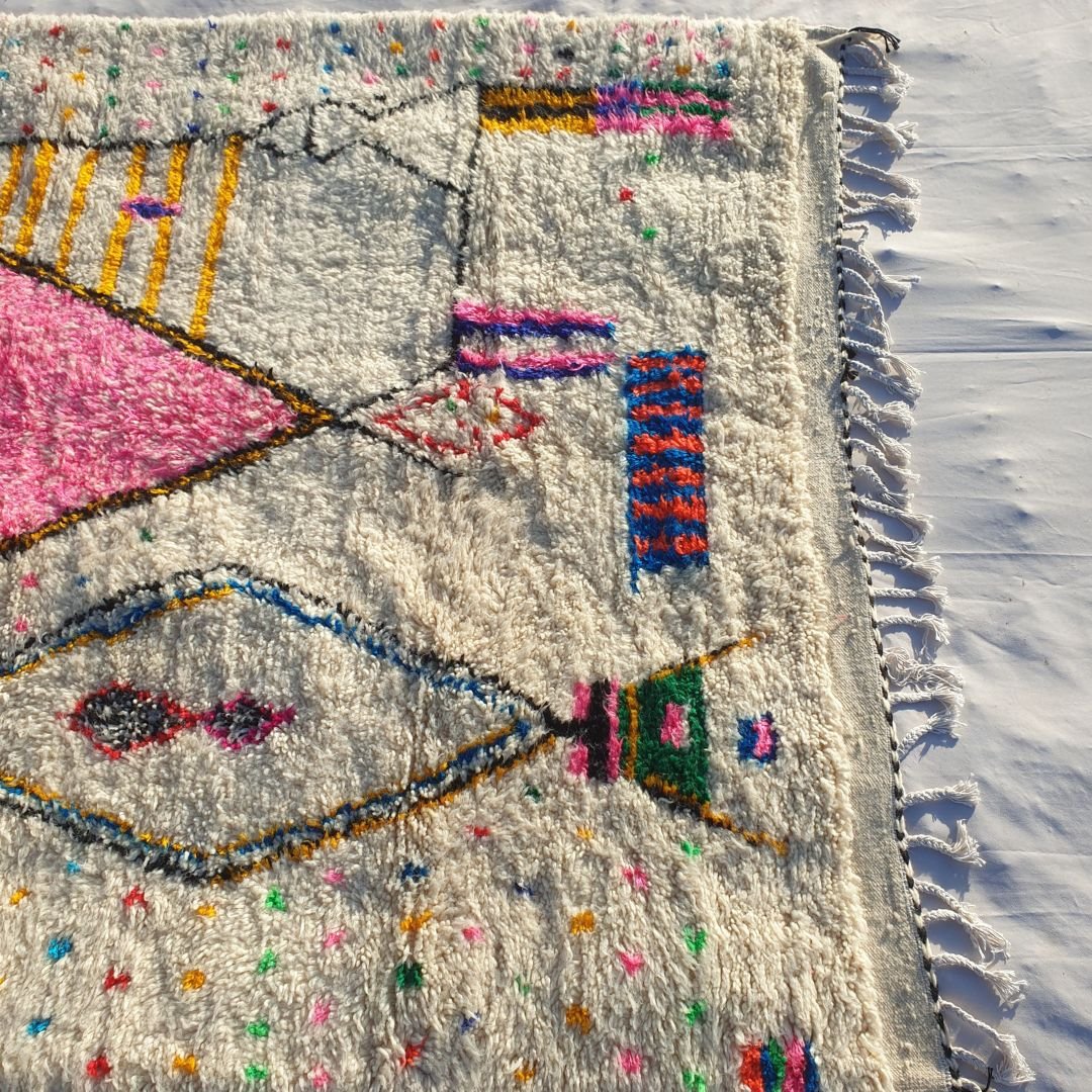One rug takes lot of time and effort, but can tells a story of life, a story of a woman somewhere in the world trying to make her life and the one of her children better. In the heart of Azilal tribe, located in Demnat a Moroccan Berber region, one of richest parts of the Atlas Mountains, are made those pieces of arts, inspired from the beautiful flowered mountains and the flowing rivers. Azilal, the most beautiful and colorful rug. handmade for self-use or to be a gift during the winter’s long nights. The Azilal rugs reflects the richness of the region. This type of traditional carpets is usually double sided, the fluffy and warmest side for winter, the other side is for summer.