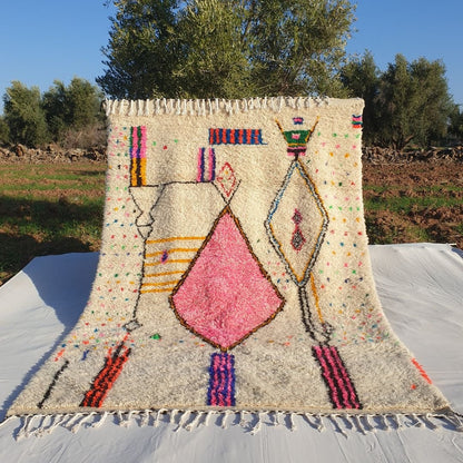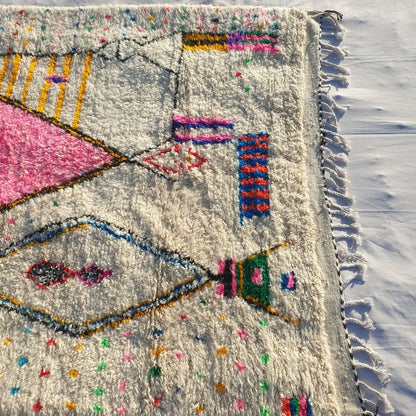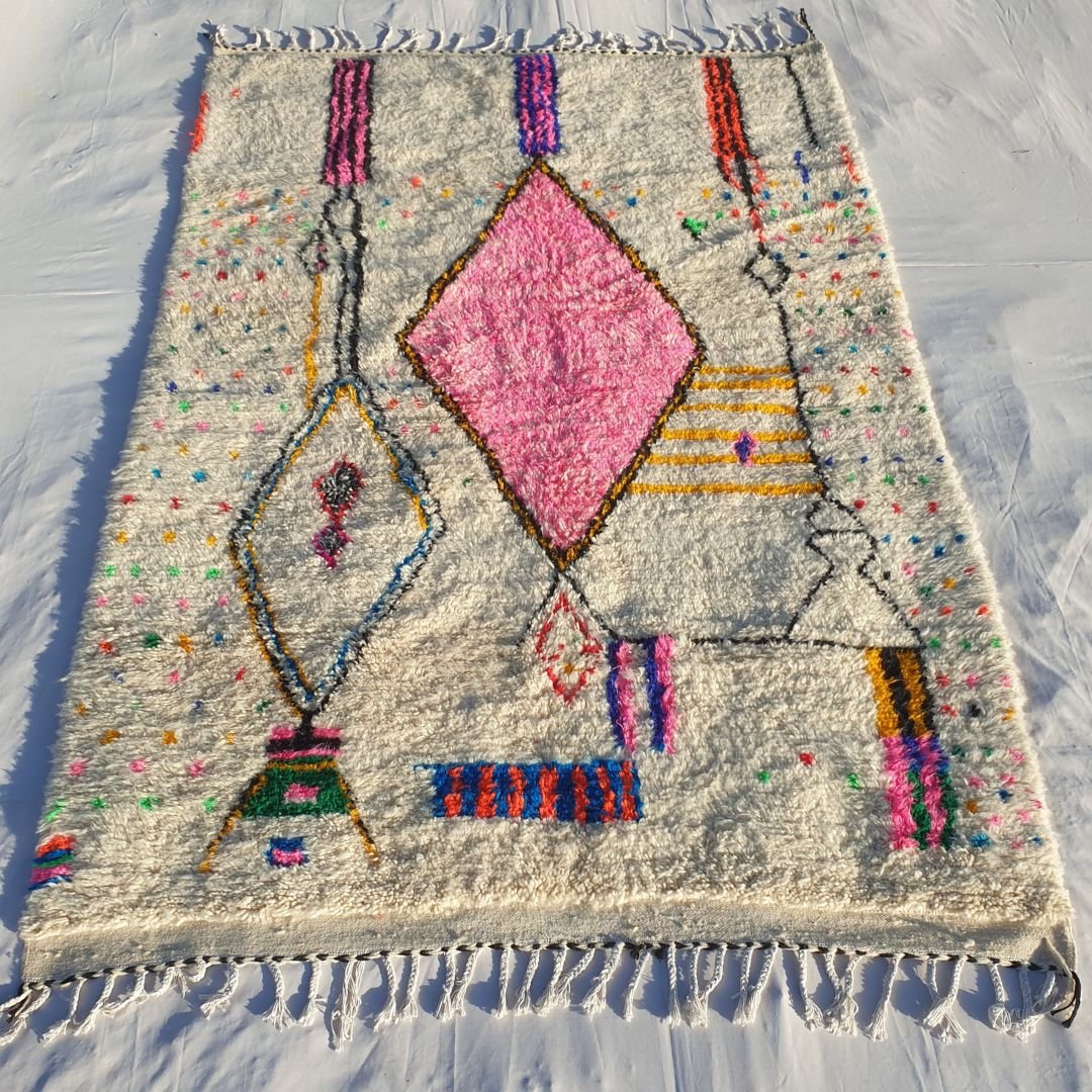 Experience the richness and warmth of The White Azilal Moroccan Rugs, a true masterpiece of Moroccan craftsmanship.