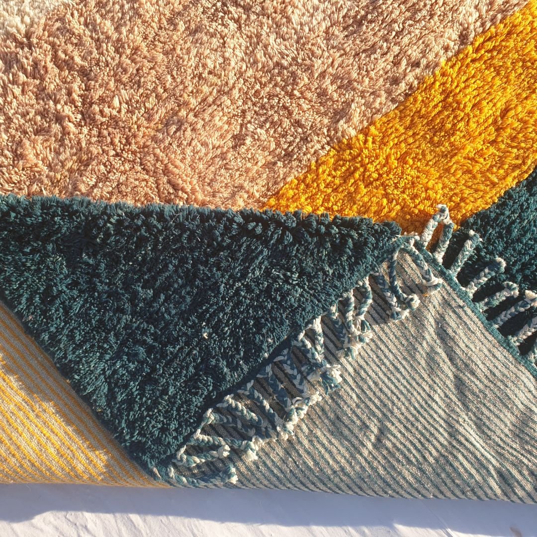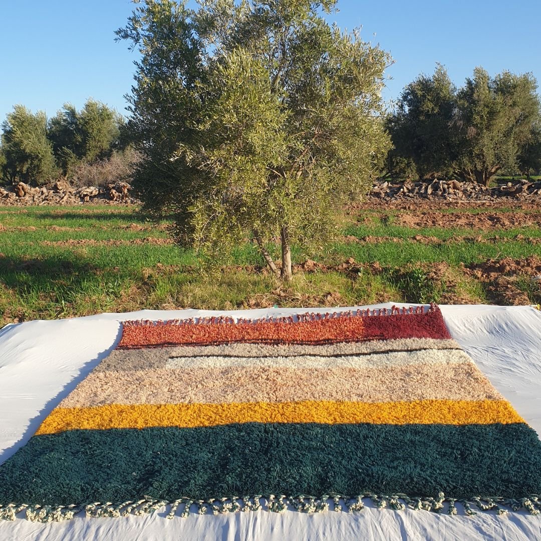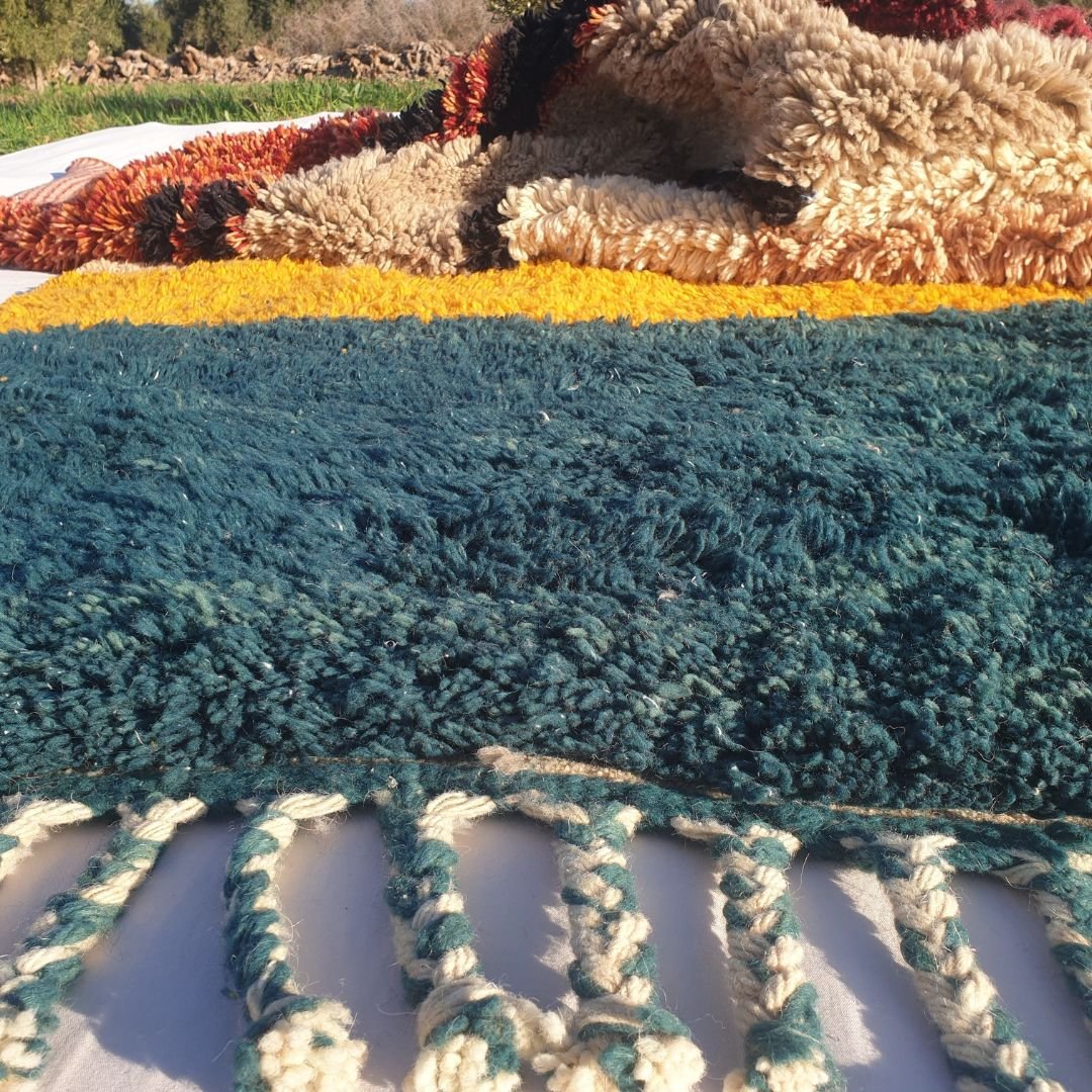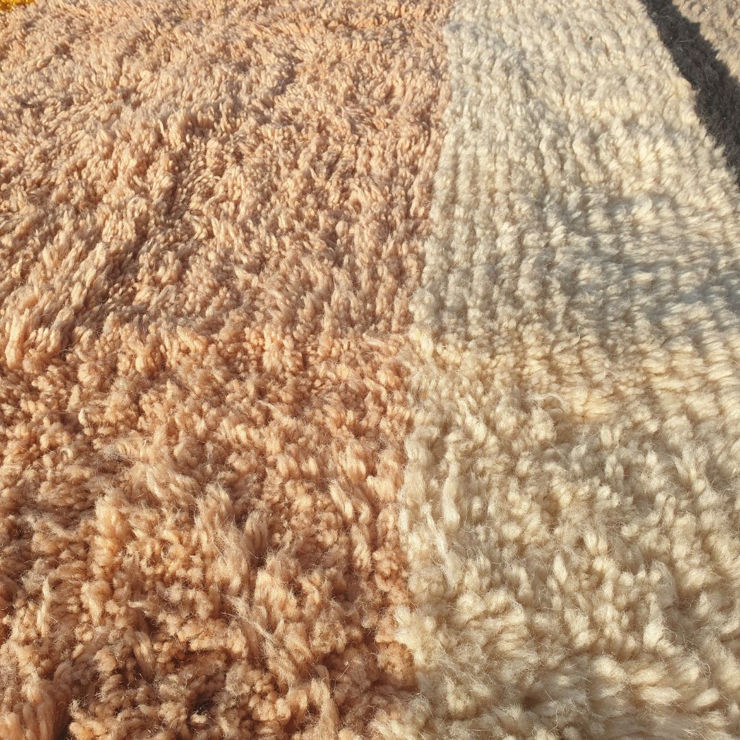 The Berber women pack the wool on the vertical loom using a metal comb, which results in a fine and silky texture of the wool that just feels heavenly on the foot, the Mrirt rugs are the most expensive due to the high quality and the quantity of the wool we use.