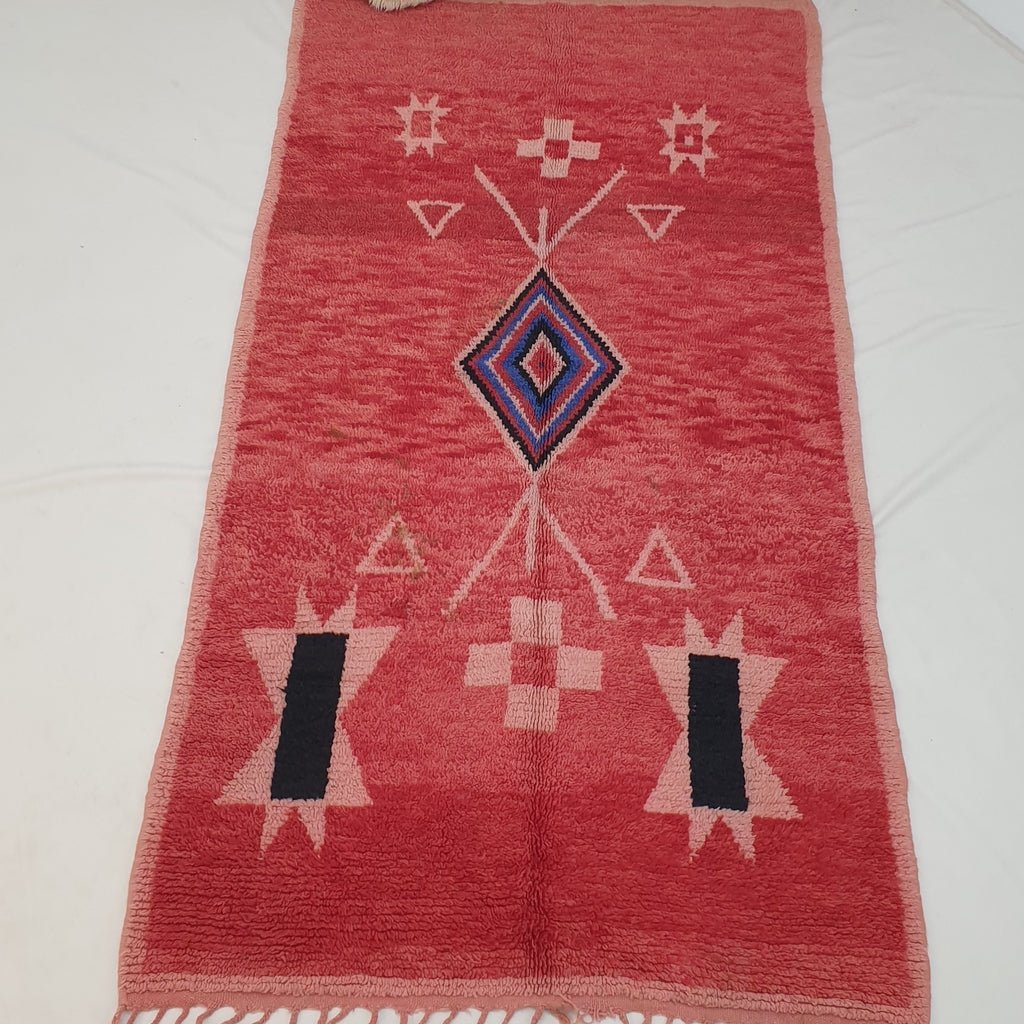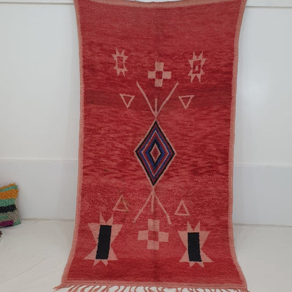 Moroccan VINTAGE Red Rug | 8x4'2 Ft | 2,45x1,28 m | ZIMANA | 100% wool handmade
