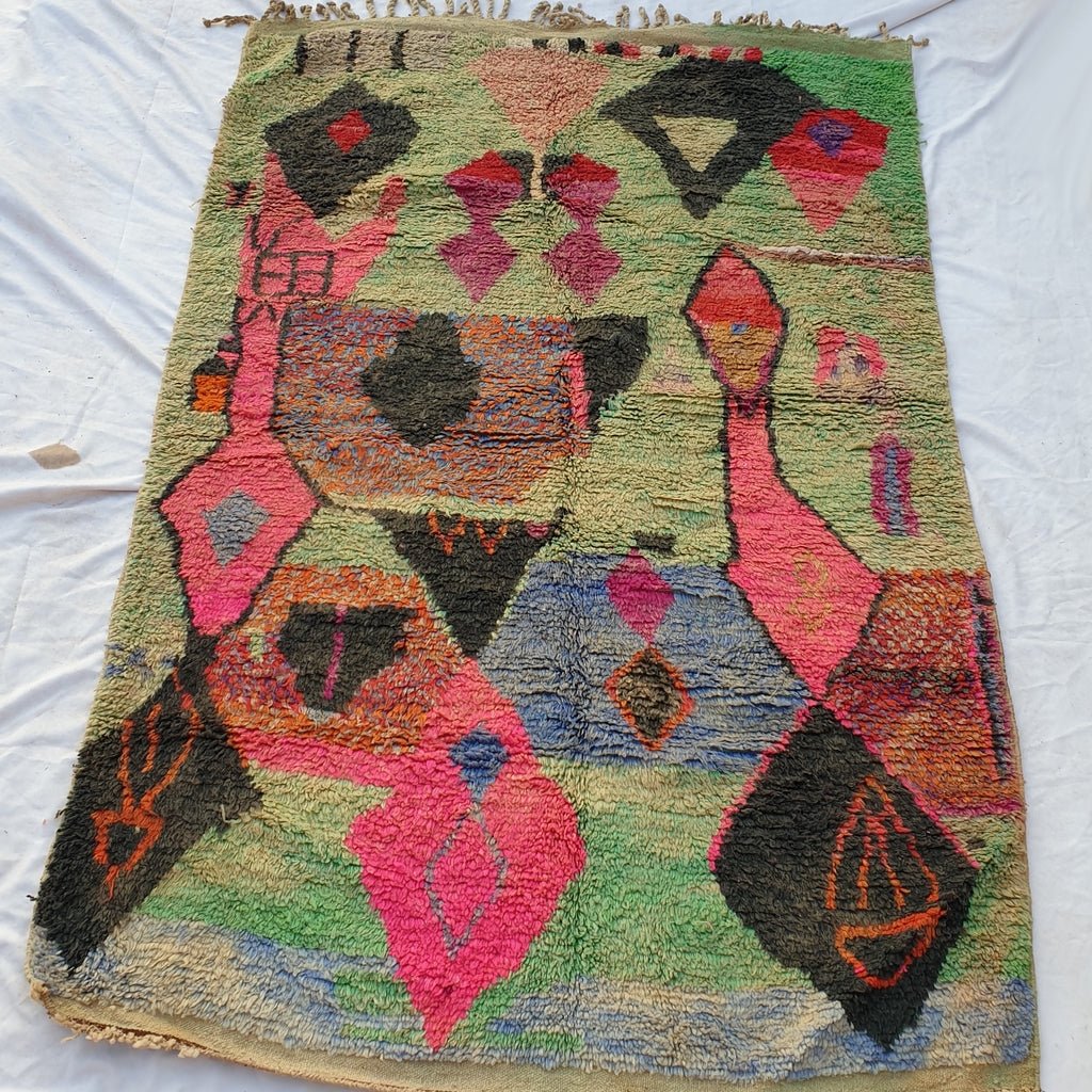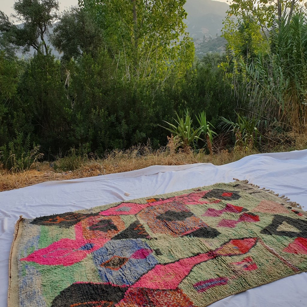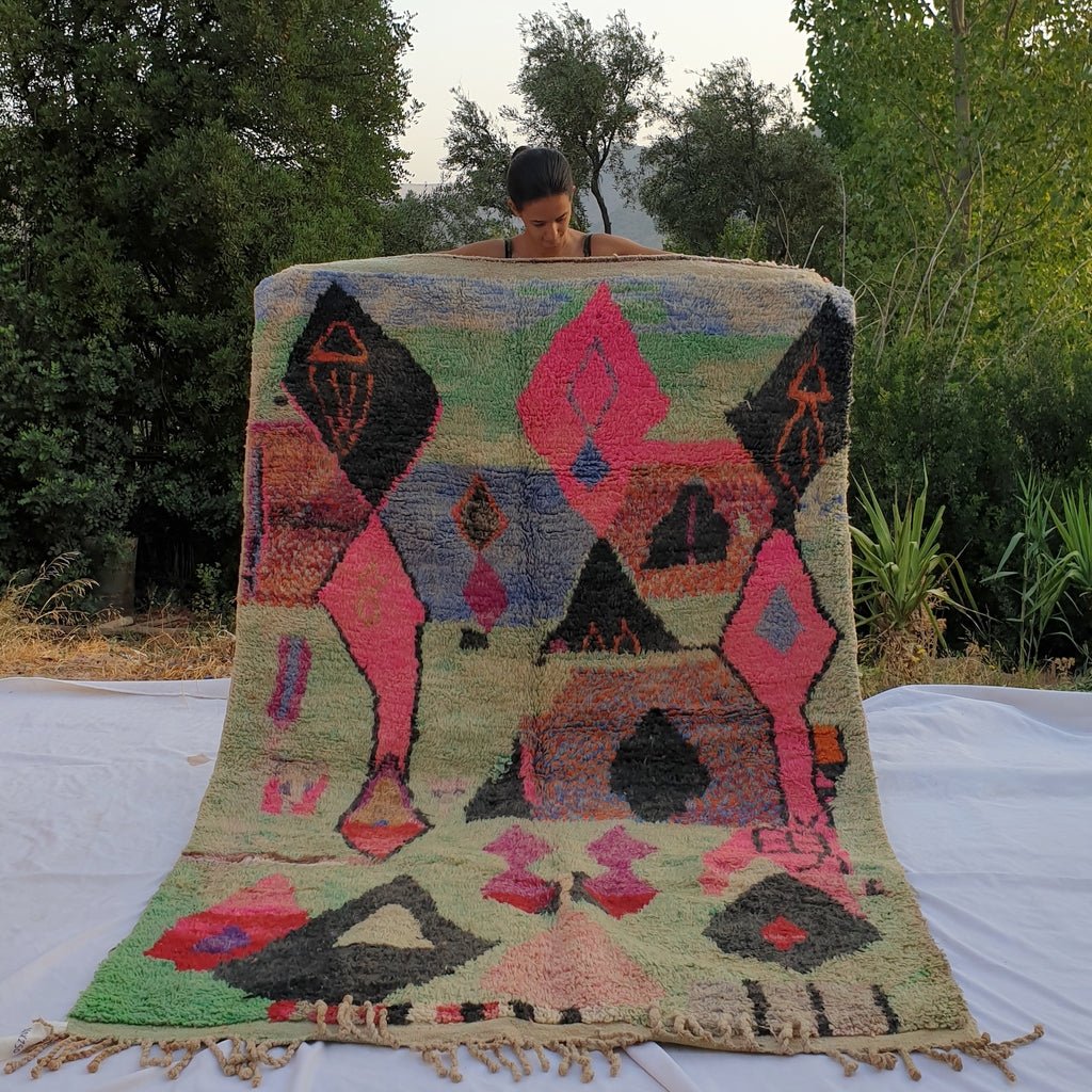 Boujaad rugs originally woven on traditional looms by Berber women in the Atlas Mountains of Morocco. These rugs are all individually handcrafted, each rug is special, unique and different, and you can never find the same pattern. They are made from natural sheep wool with natural dye, and typical knotting techniques practiced by Berber tribes - but with the knot being pulled tighter, those rugs require less wool which allows the weaver to create the intricate geometric patterns things that make Boujaad rugs famous and desired by the whole word and perfect for any indoor or outdoor style.