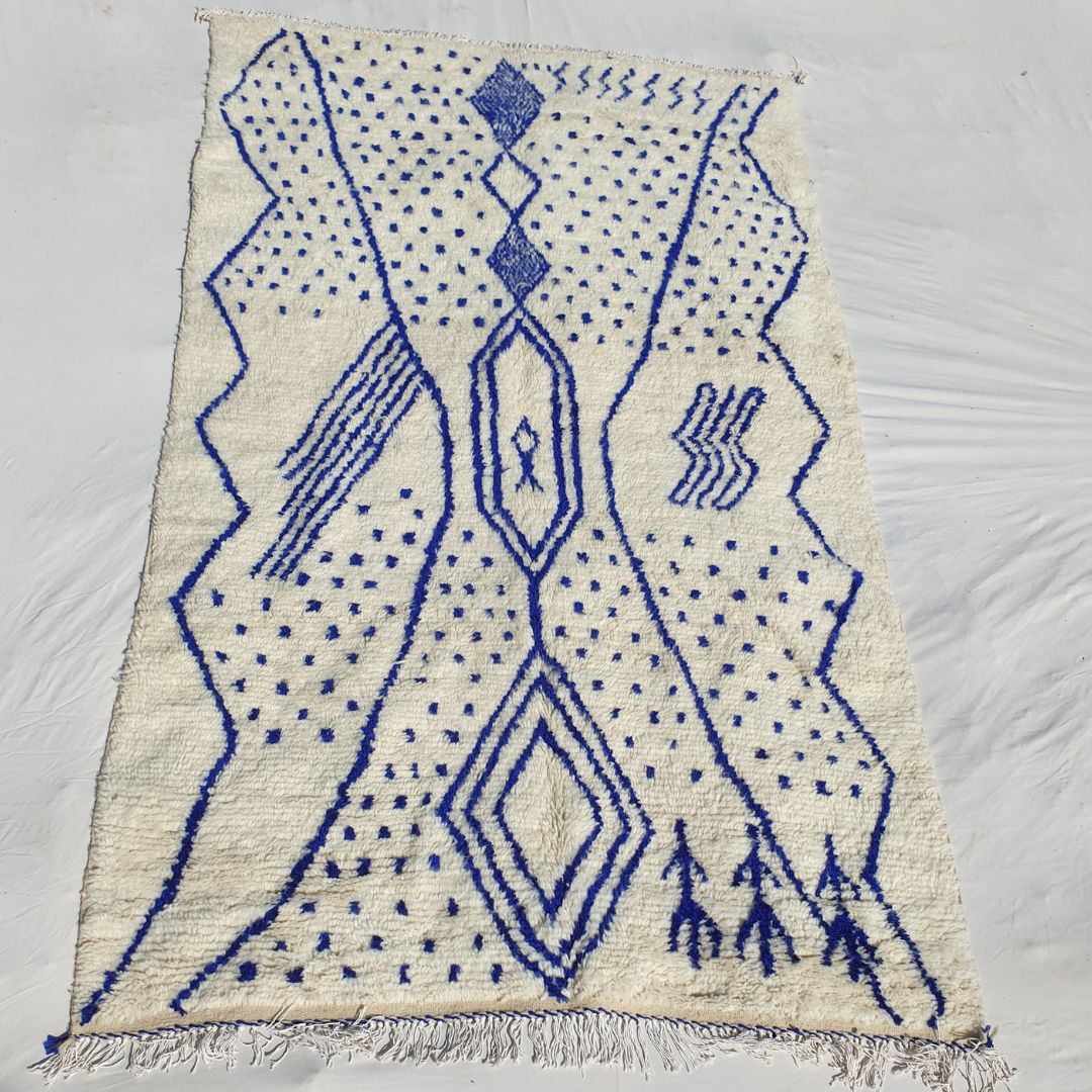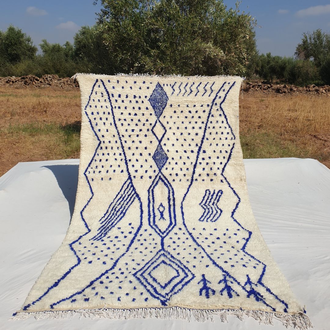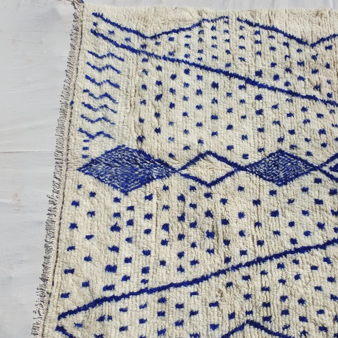Nirjas - White & Blue Moroccan Rug Azilal | Authentic Handmade Berber Rug | 6'x10'17 ft | 183x310 cm