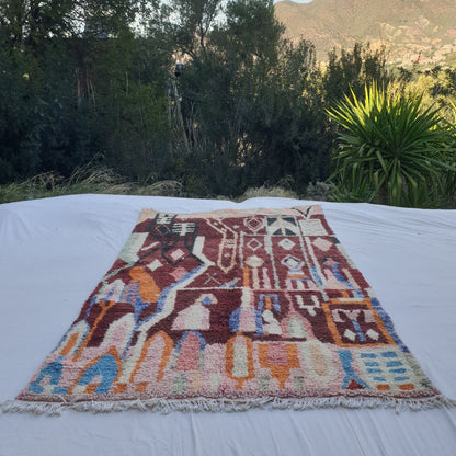Ntelia - Burgundy & Pink Moroccan Rug 5x8 Boujad | Authentic Berber Living room & Bedroom Rug | 5'x8'60 Ft | 152x262 cm