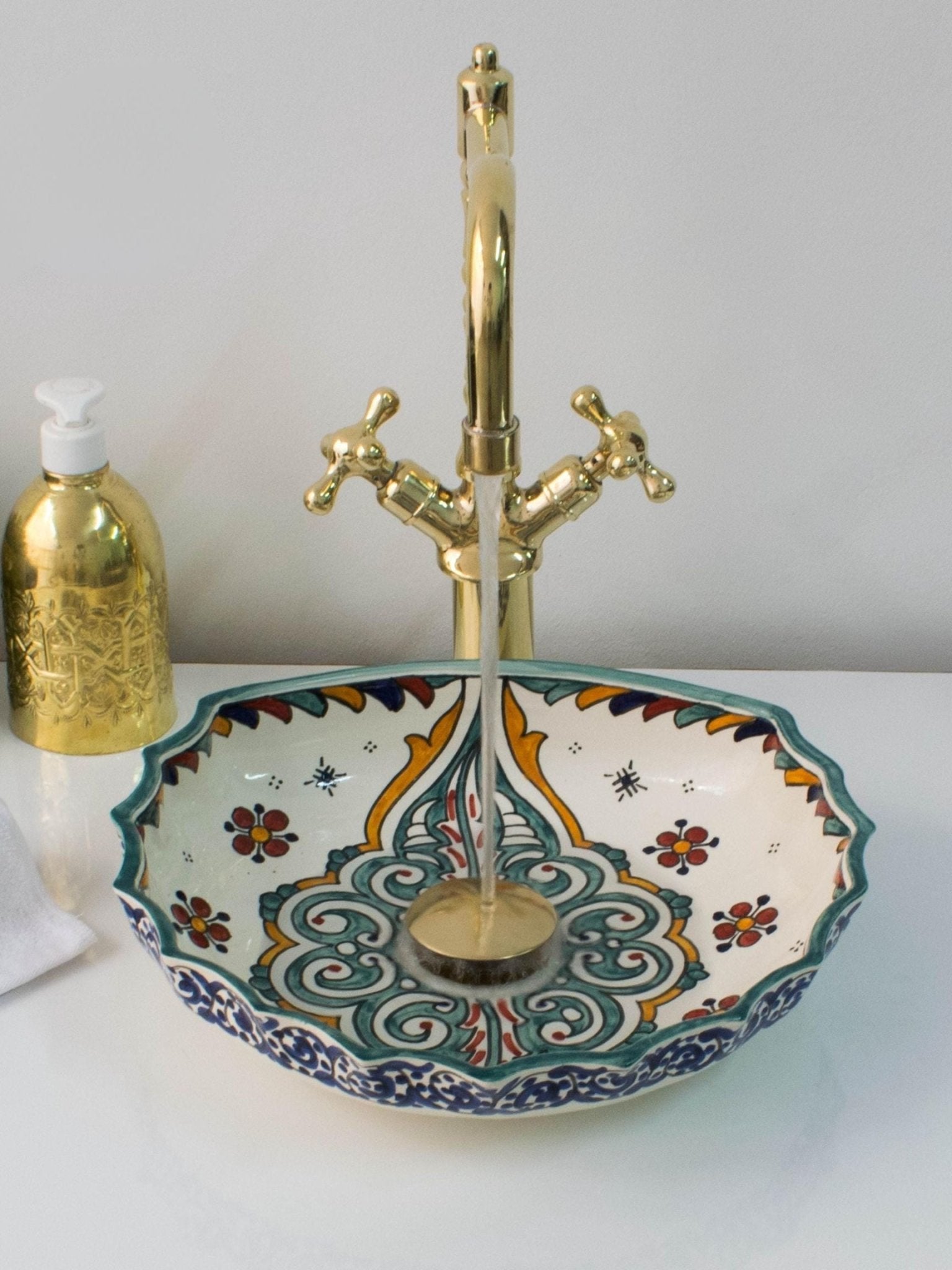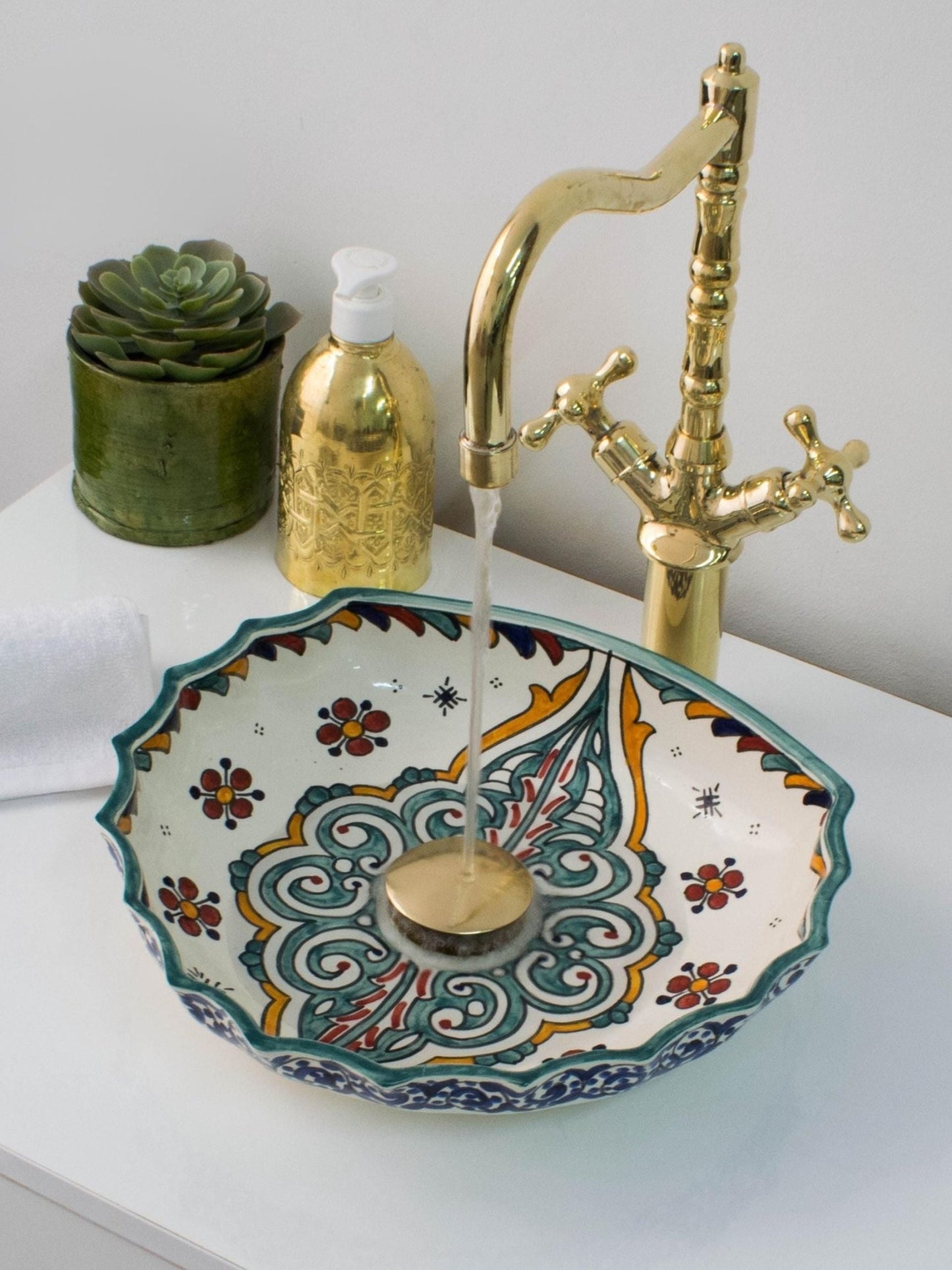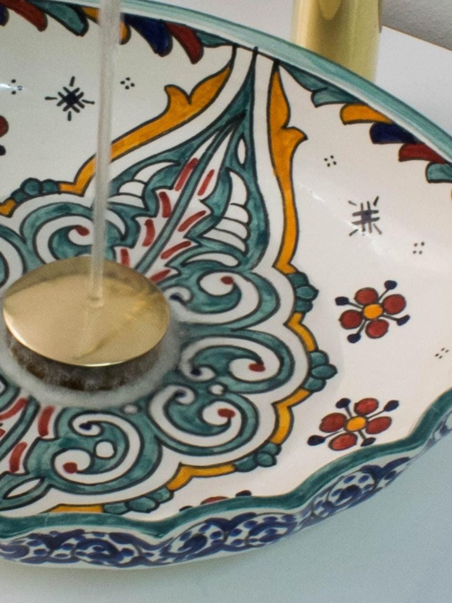 Each sink is meticulously painted with natural pigments, ensuring a one-of-a-kind finish—no two are exactly alike!