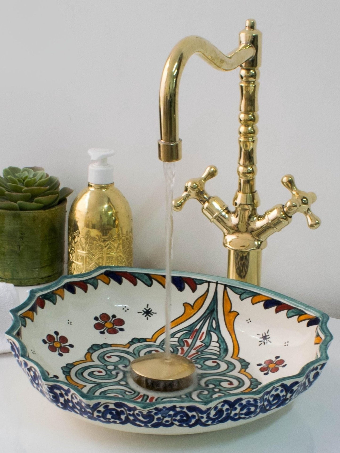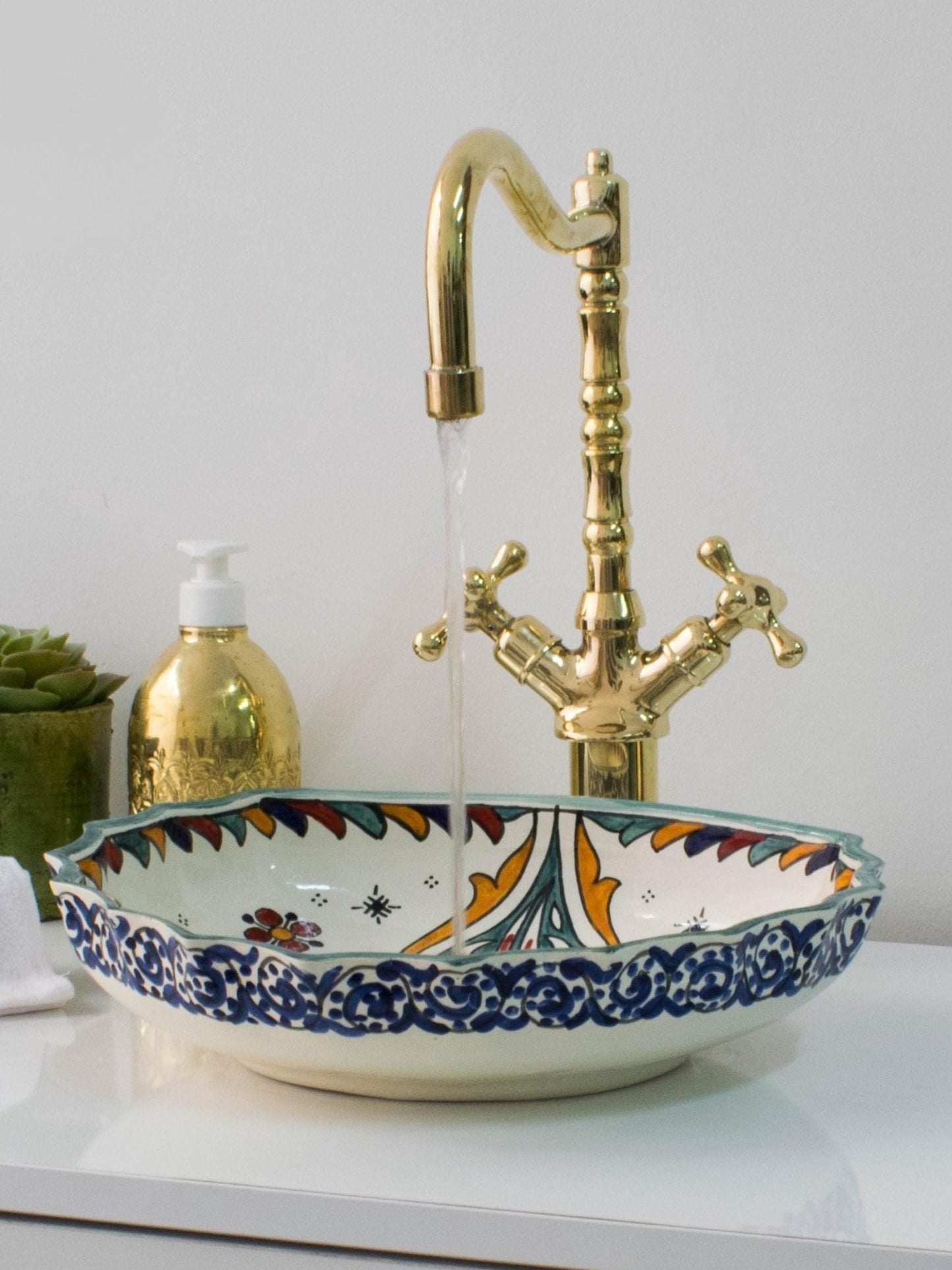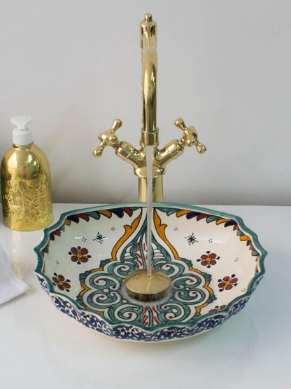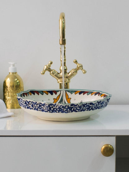 Akaroa - Double Bathroom Sink: Moroccan Handmade, Hand-Painted Joyful Colorful Ceramic Vessel