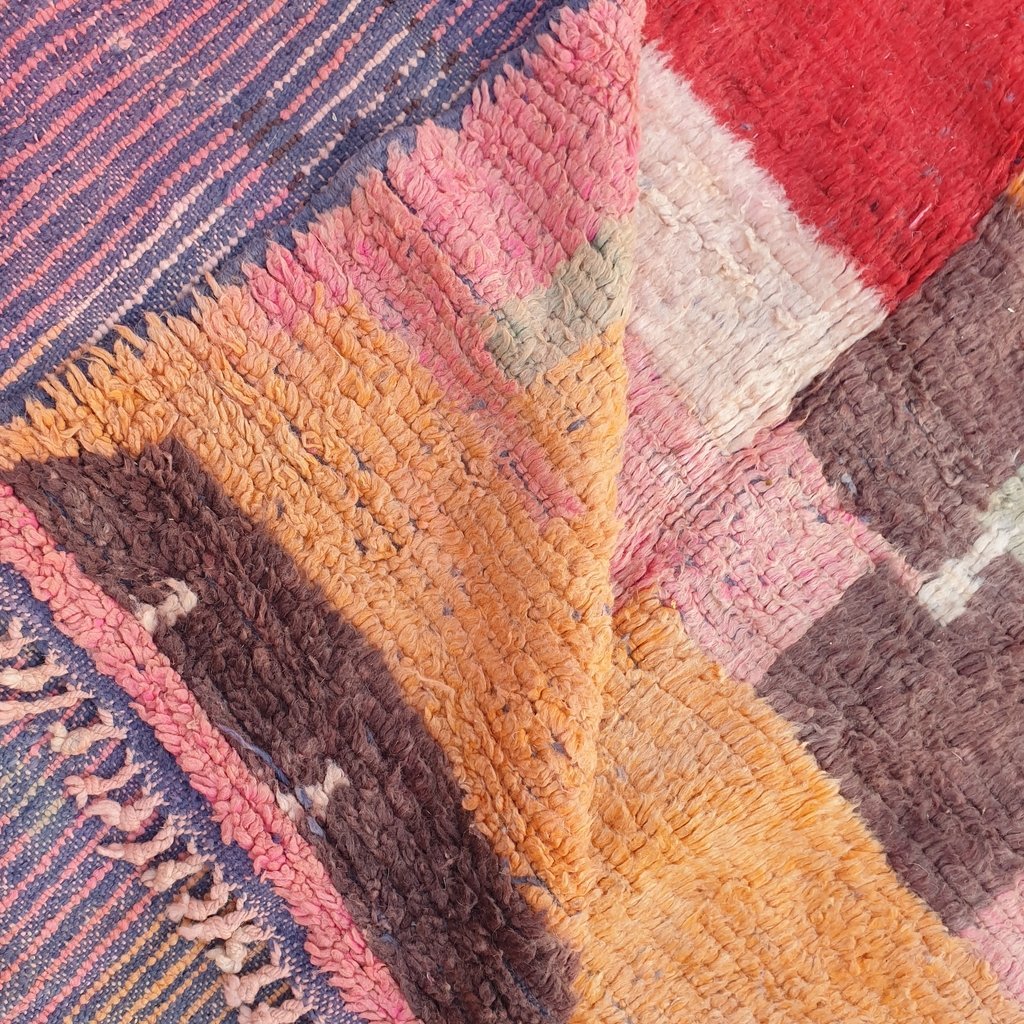 Boujaad, the Amazing Berber lightweight’s rug. The design is Inspired from the Kilim rugs. Named also Hanbal, because of its Boho, Modern, Scandinavian, and traditional Berber Moroccan style, it has only one side, it is usually used for floors or to decorate the walls of the interiors.