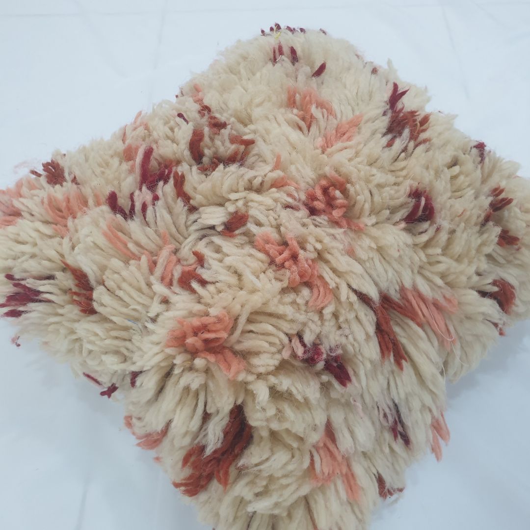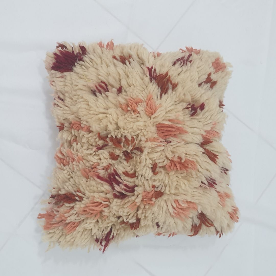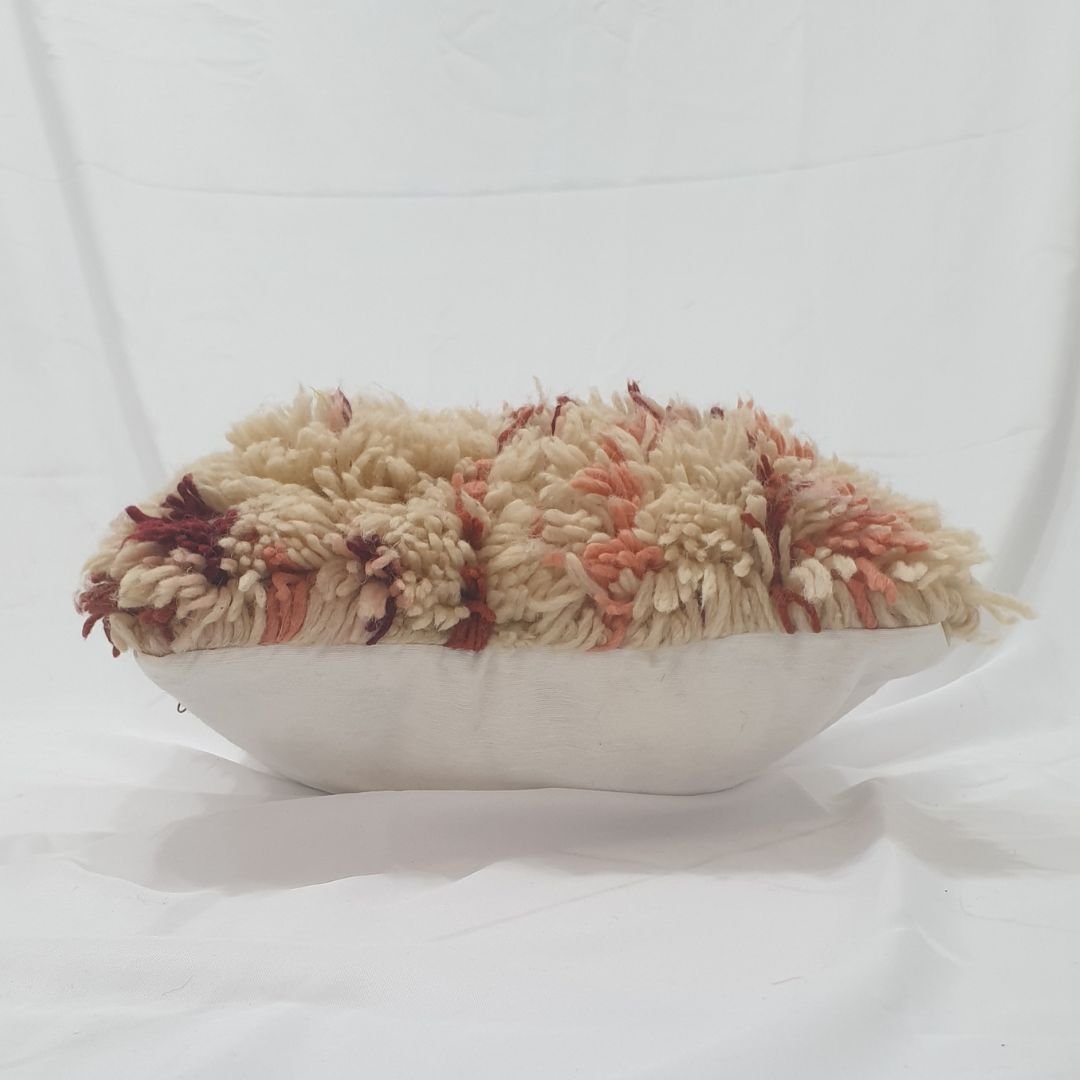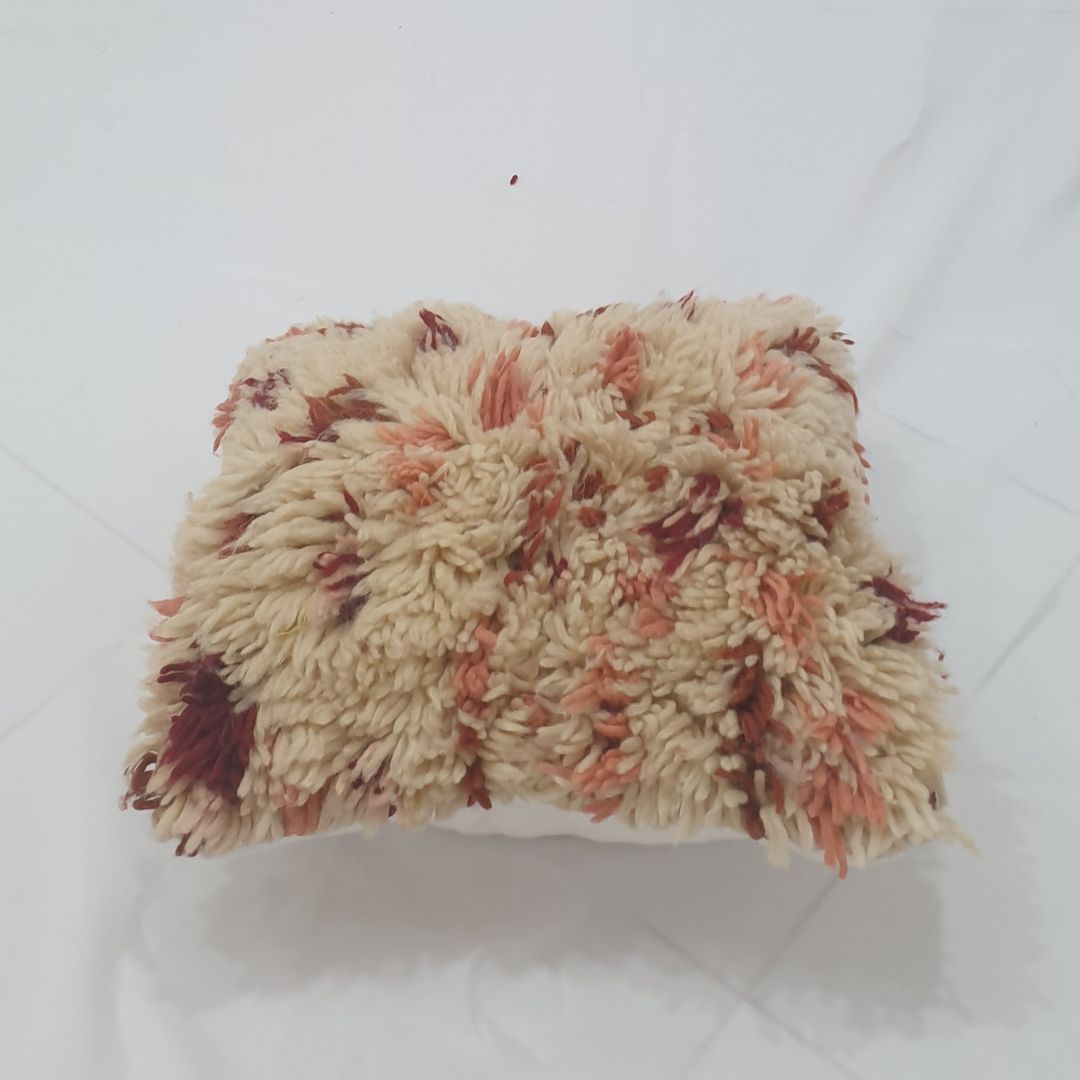 Shaggy Wool Cushion Cover - Beni Mrirt Pink Red | 16x14 inches | 40x36 cm