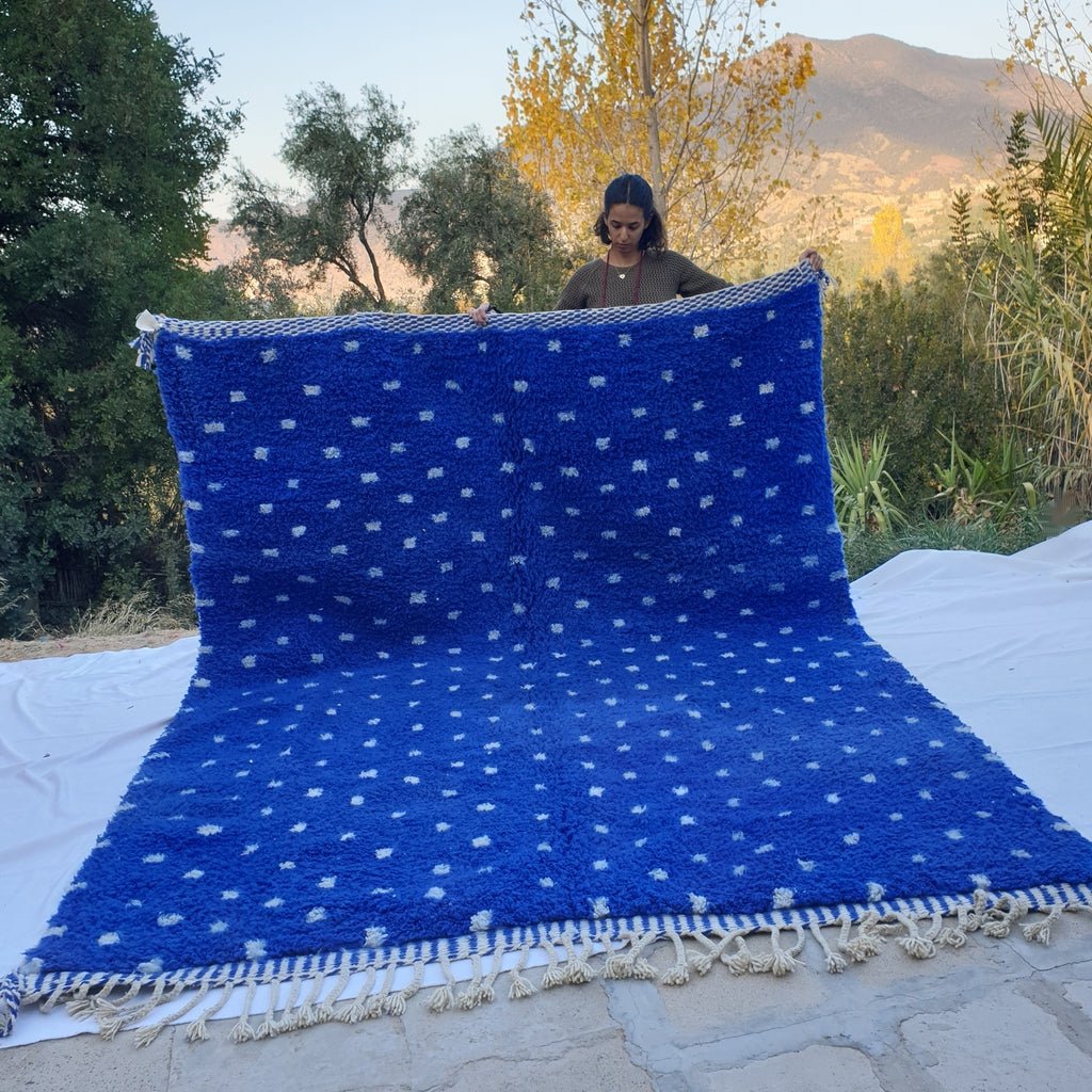Tazrakt - BENI OUARAIN Moroccan Blue Rug Soft & Thick for Living Room | Moroccan High Pile Area Rug Berber Authentic Wool | 8x10'8 Ft | 330x242 cm
