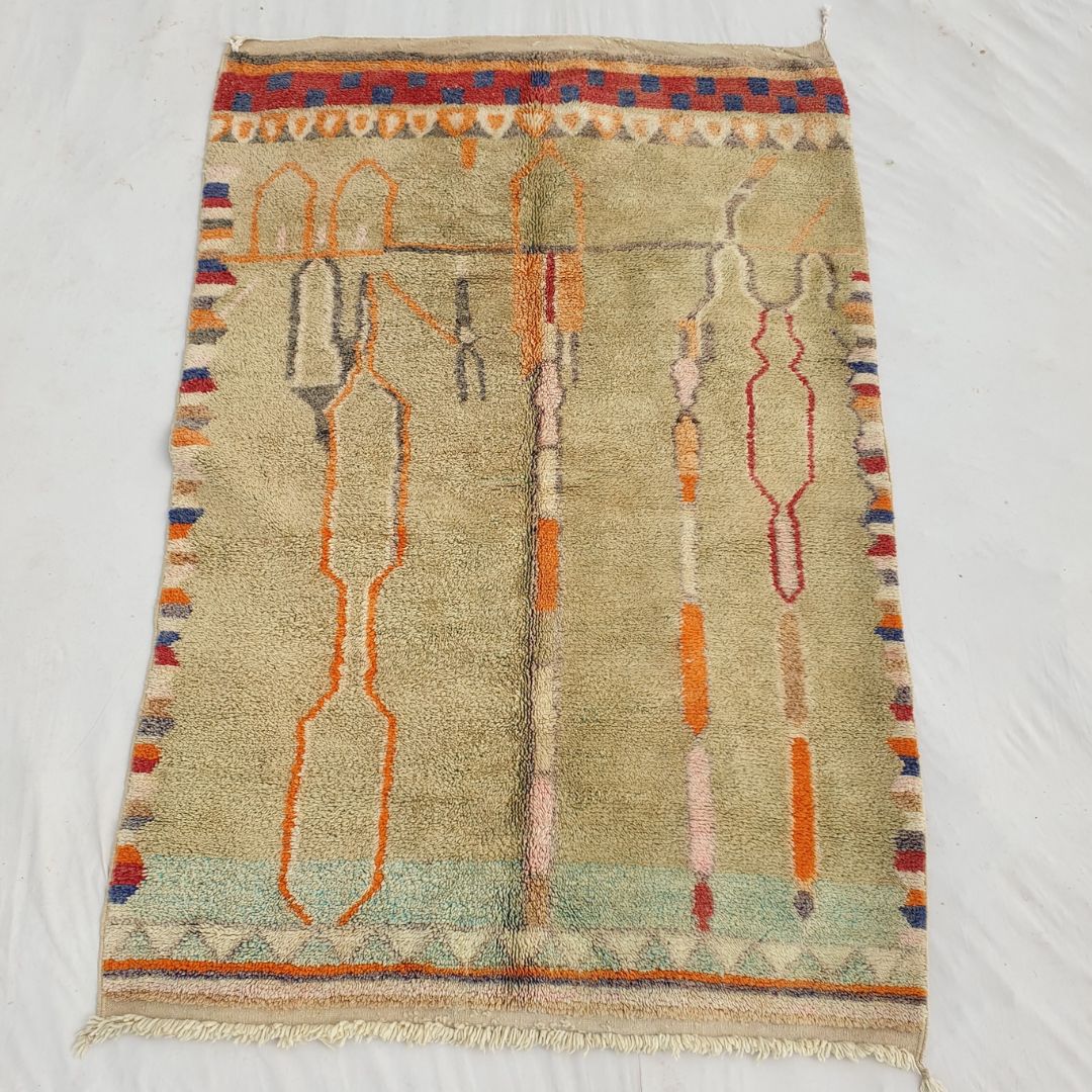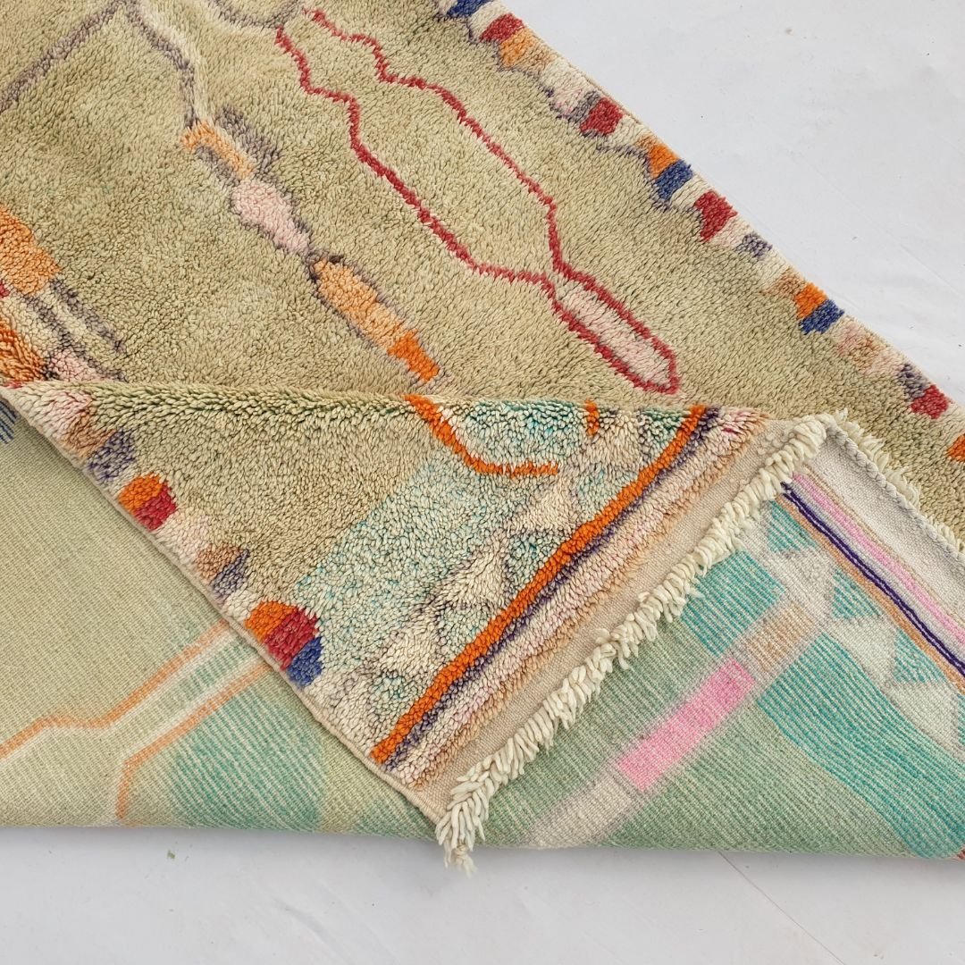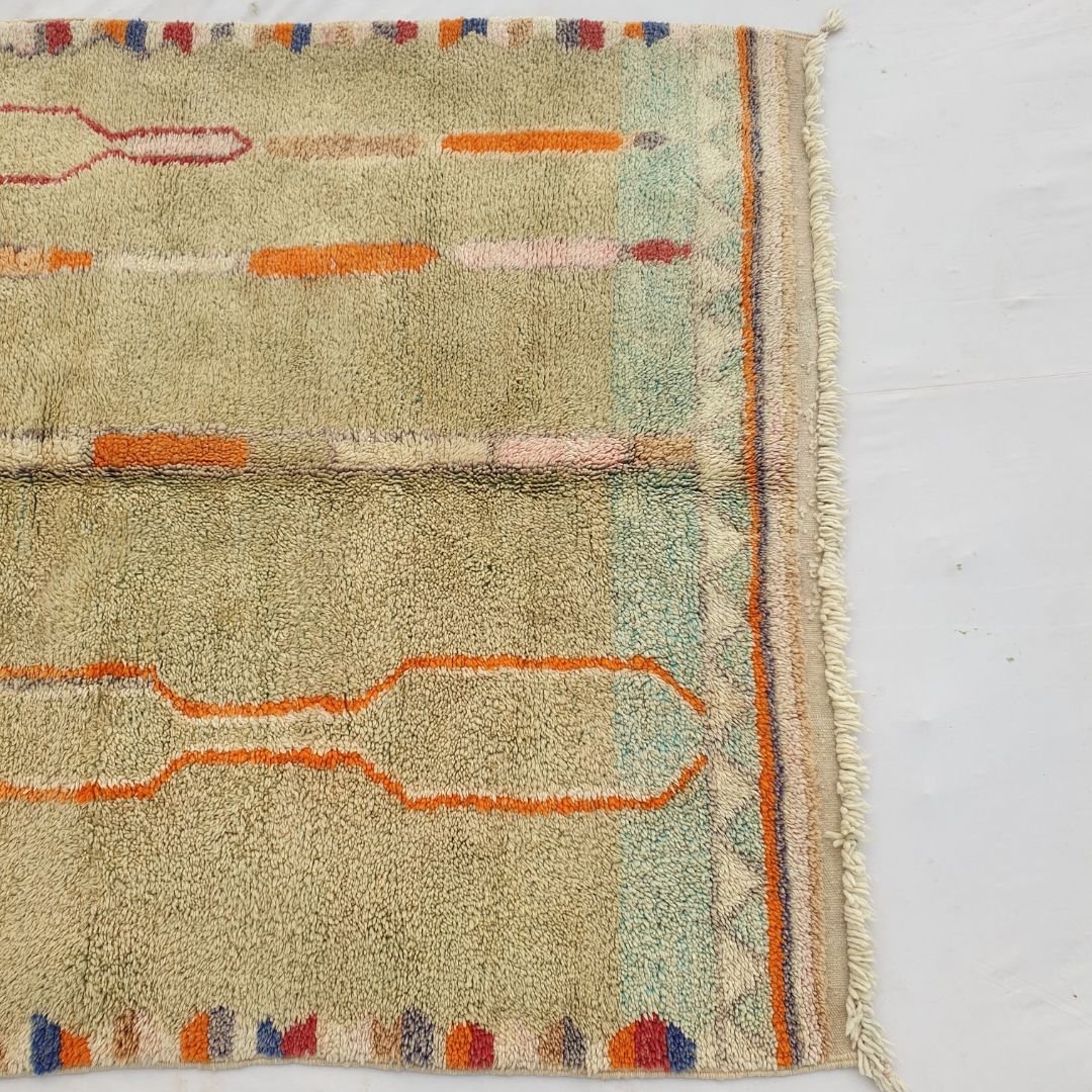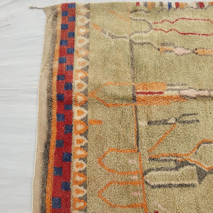 Zayti - Green Moroccan Boujad Rug 5x7 | Handmade with 100% Authentic wool | 7'50x5'10 Ft | 230x156 cm