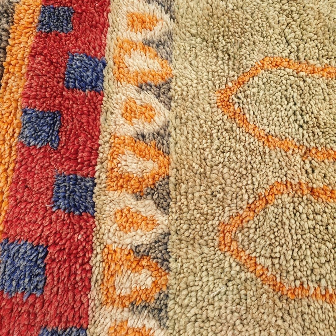 Boujad rugs originally woven on traditional looms by Berber women in the Atlas Mountains of Morocco. These rugs are all individually handcrafted, each rug is special, unique and different, and you can never find the same pattern. They are made from natural sheep wool with natural dye, and typical knotting techniques practiced by Berber tribes - but with the knot being pulled tighter, those rugs require less wool which allows the weaver to create the intricate geometric patterns things that make Boujaad rugs famous and desired by the whole word and perfect for any indoor or outdoor style.